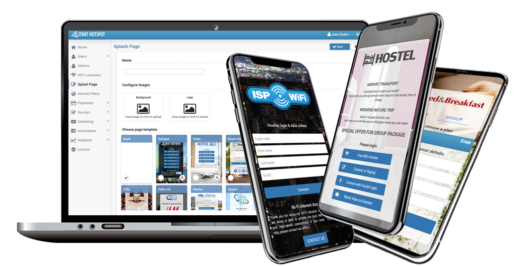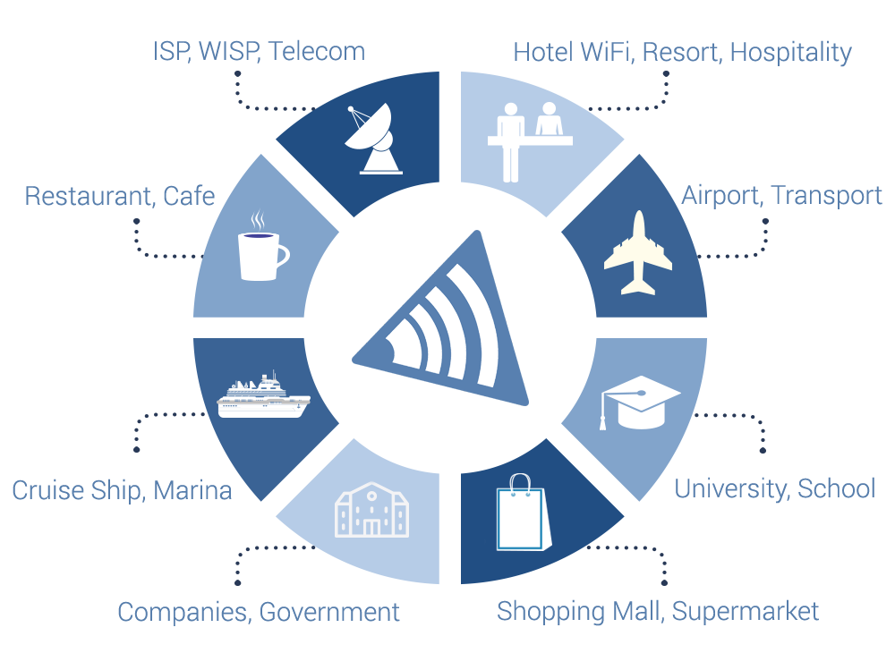 Our solution controls user Internet access, sets limits, processes payments, engages users, provides powerful analytics and helps you run different marketing strategies to maximize revenue from your WiFi.